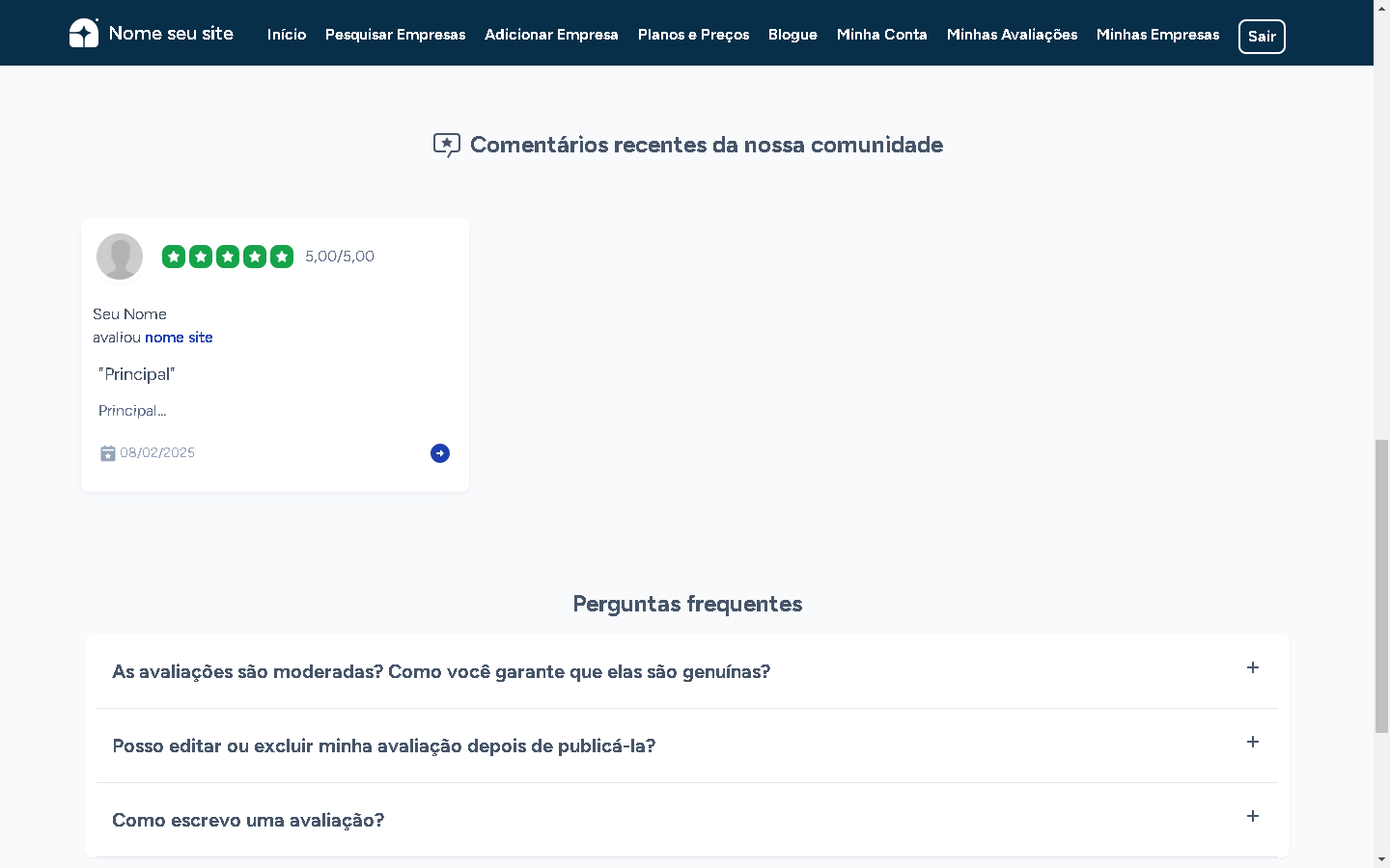 Descubra todo o potencial do Sistema explorando a demonstração ao vivo. Comece a construir uma plataforma de avaliações confiável e segura que conecta empresas com seus clientes!