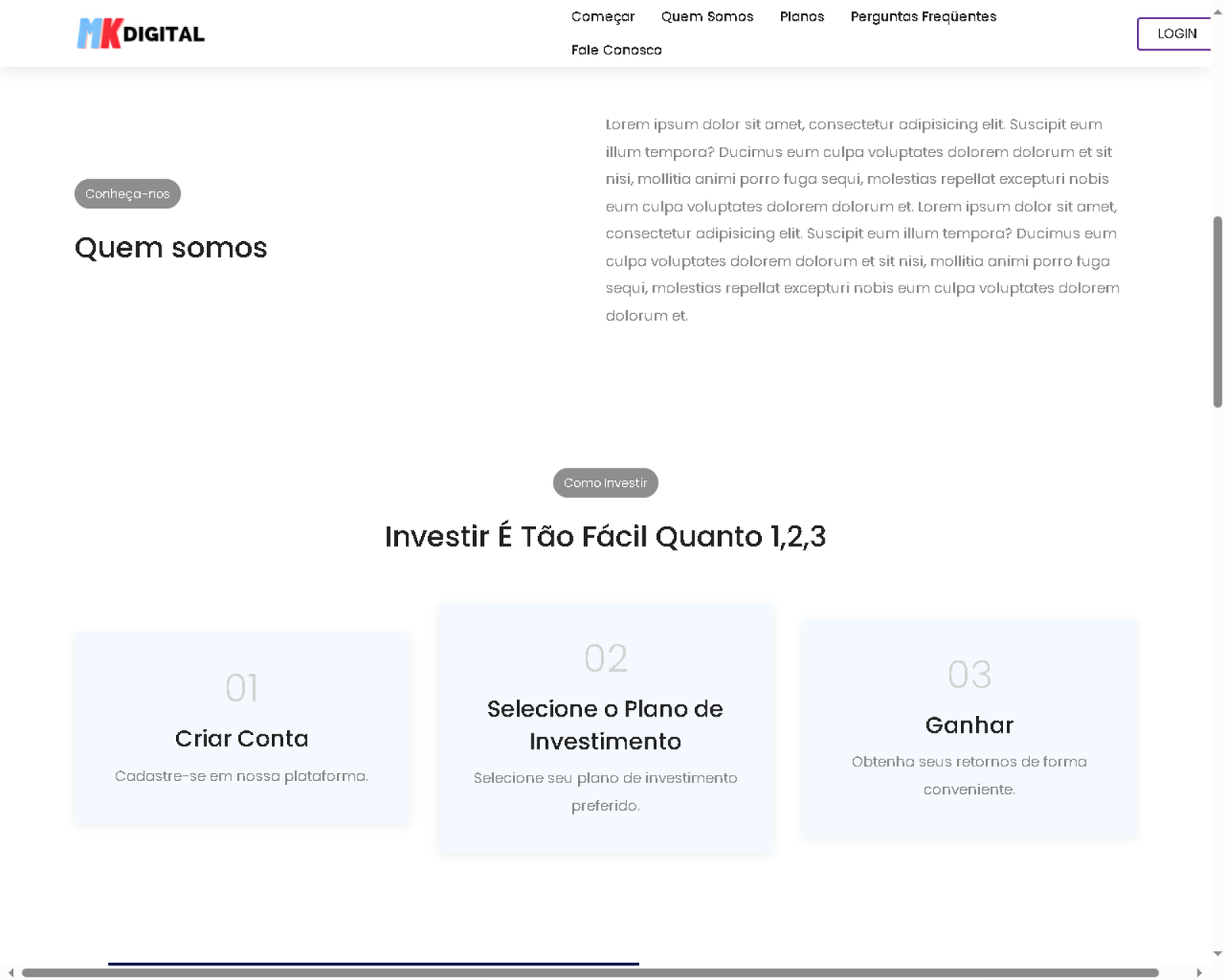 de usuário limpa e moderna Configure e adicione seus planos de investimento facilmente
