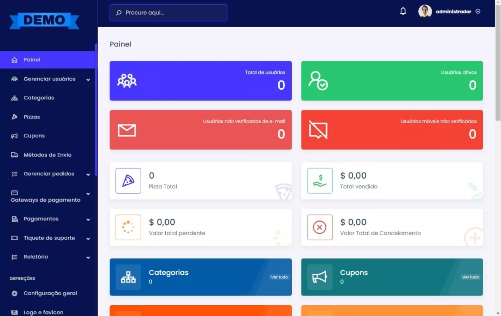 - Gerenciamento de cupons.