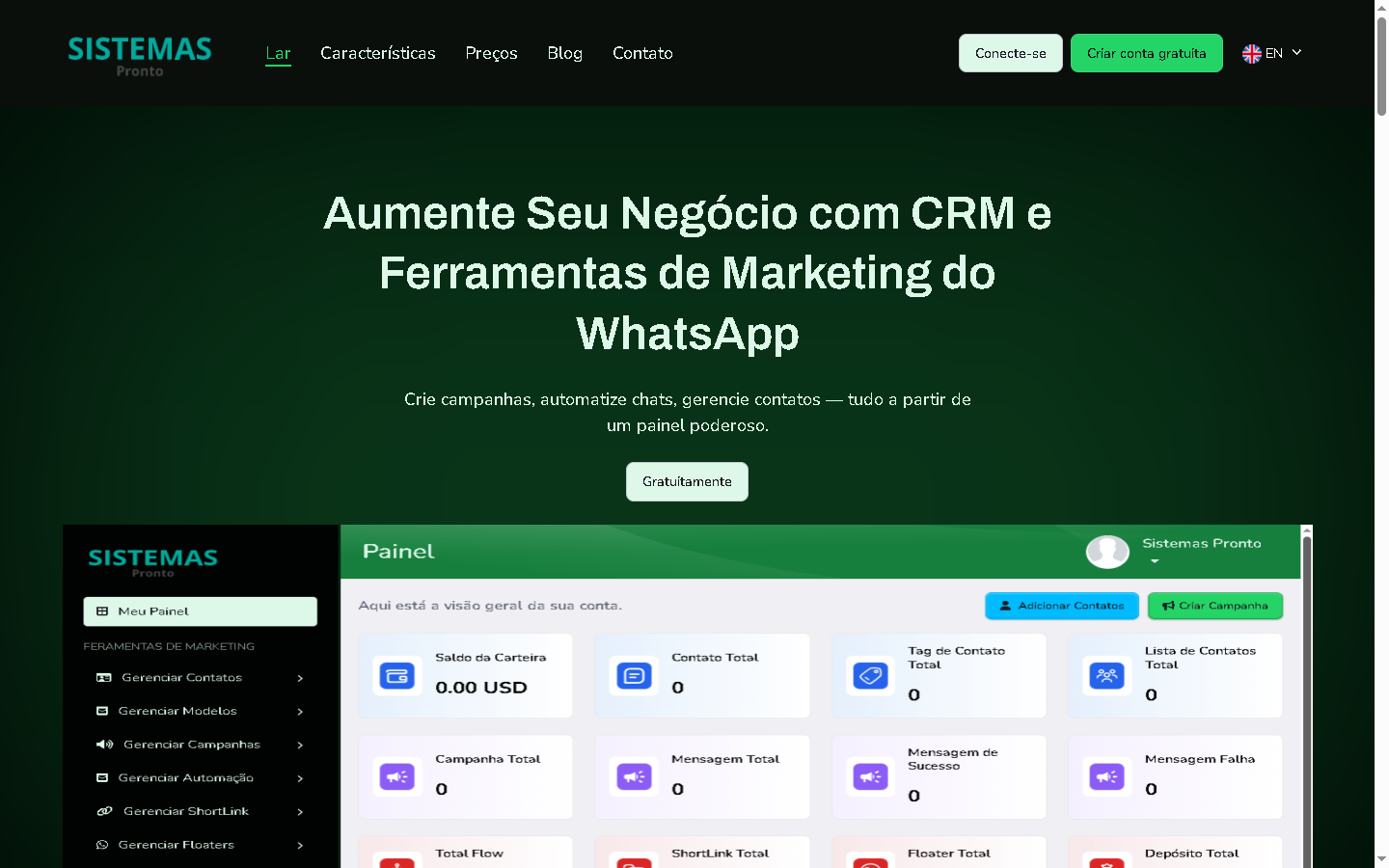 - CRM para WhatsApp incluído: organize contatos, histórico de conversas e campanhas em um só lugar.