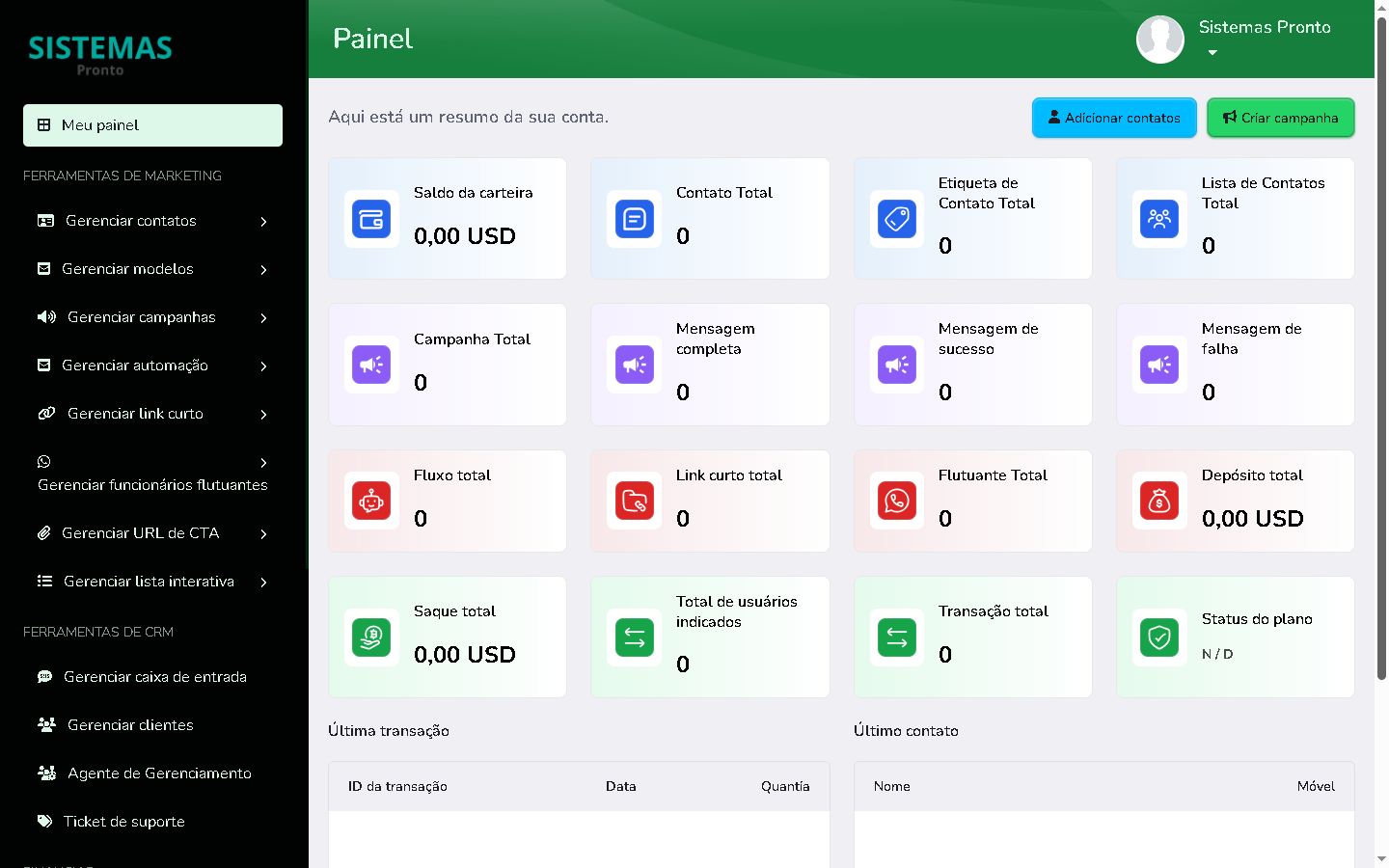 - Painel de administração completo para gerenciar usuários, planos, campanhas e relatórios.