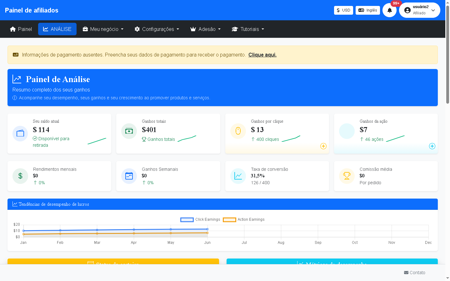 Sistema completo para afiliados e fornecedores que permite gerenciar sua própria rede de afiliados diretamente em seu domínio, sem taxas mensais.