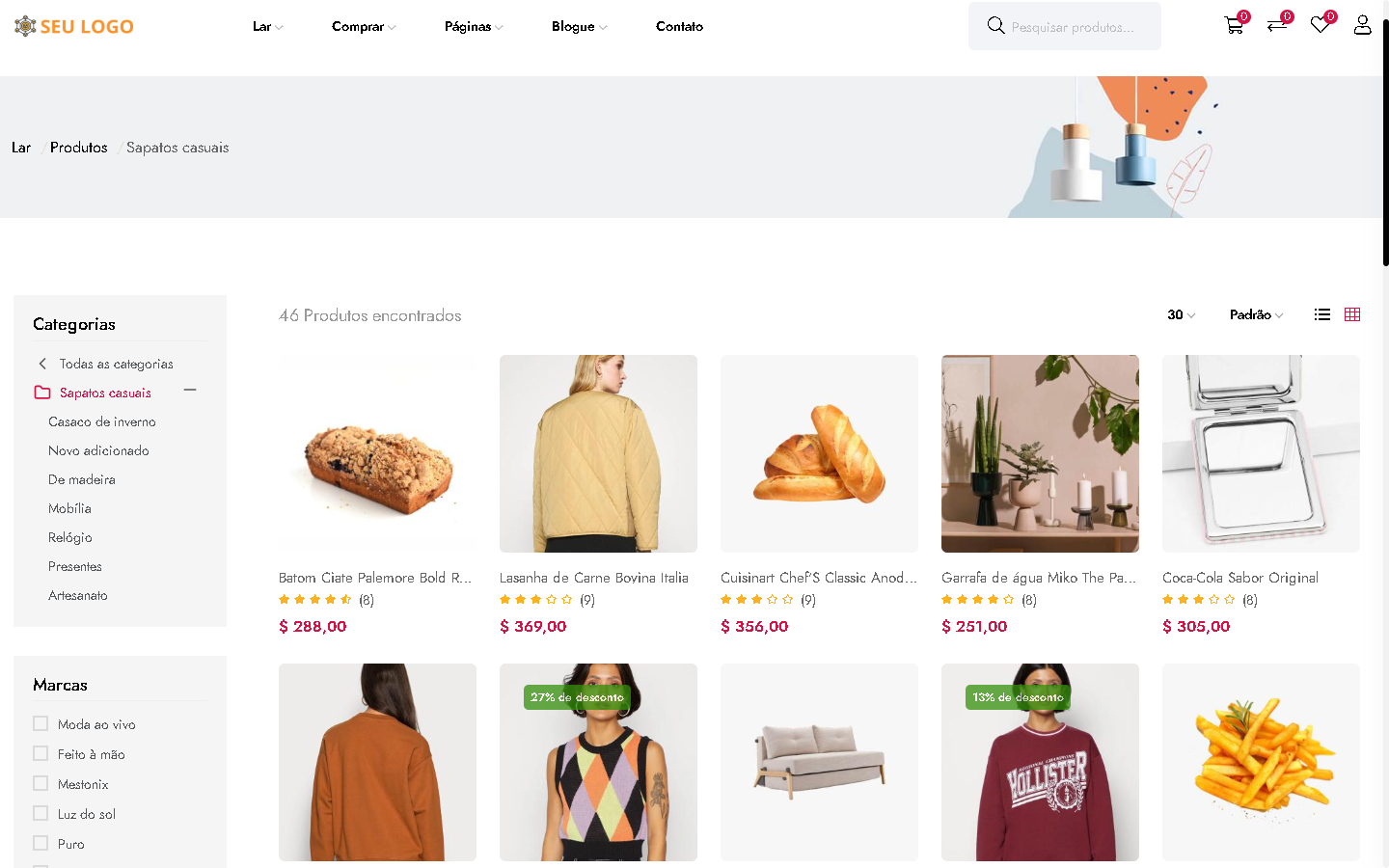 Você pode usar este modelo para vender produtos de moda, sapatos, bolsas, cosméticos, roupas, óculos de sol, móveis, produtos infantis, eletrônicos, produtos de papelaria, relógios, alimentos, mercearias, artigos esportivos, etc.