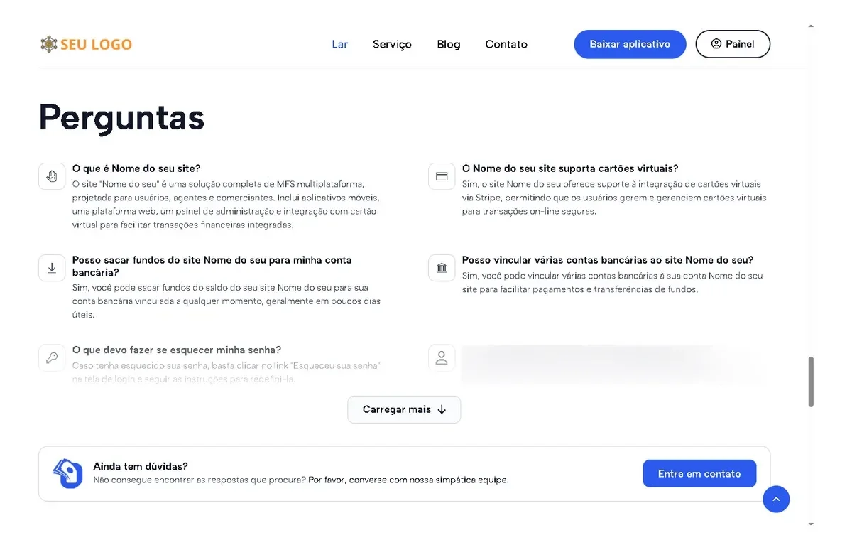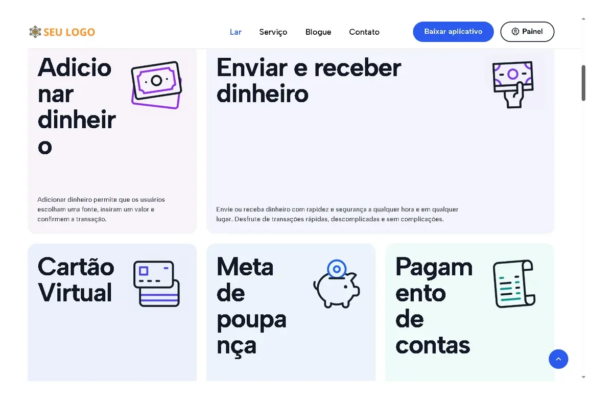 Escalável e seguro: construído com tecnologias modernas, o sistema oferece segurança robusta com verificação OTP, autenticação 2FA e transações seguras, garantindo a segurança das informações financeiras dos seus clientes.