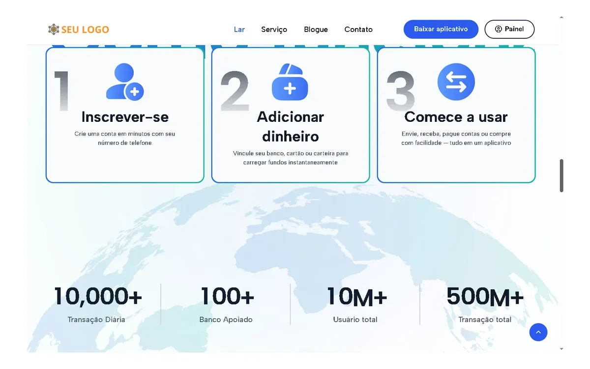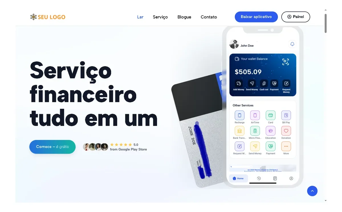 um aplicativo elegante e intuitivo para indivíduos enviarem dinheiro, fazerem pagamentos e gerenciarem suas atividades financeiras sem esforço.