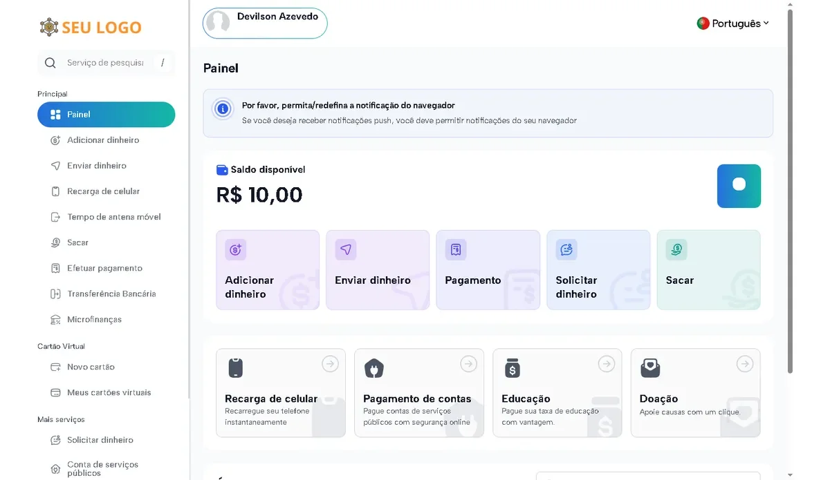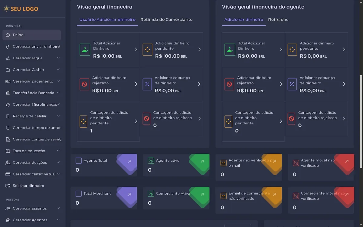 Projetada para usuários, agentes e comerciantes, sistema integra aplicativos móveis e web poderosos para agilizar pagamentos, transferências de dinheiro e gerenciamento de cartões virtuais. Seja você uma startup, instituição financeira ou provedora de serviços digitais, a solução definitiva para transformar suas operações comerciais.
