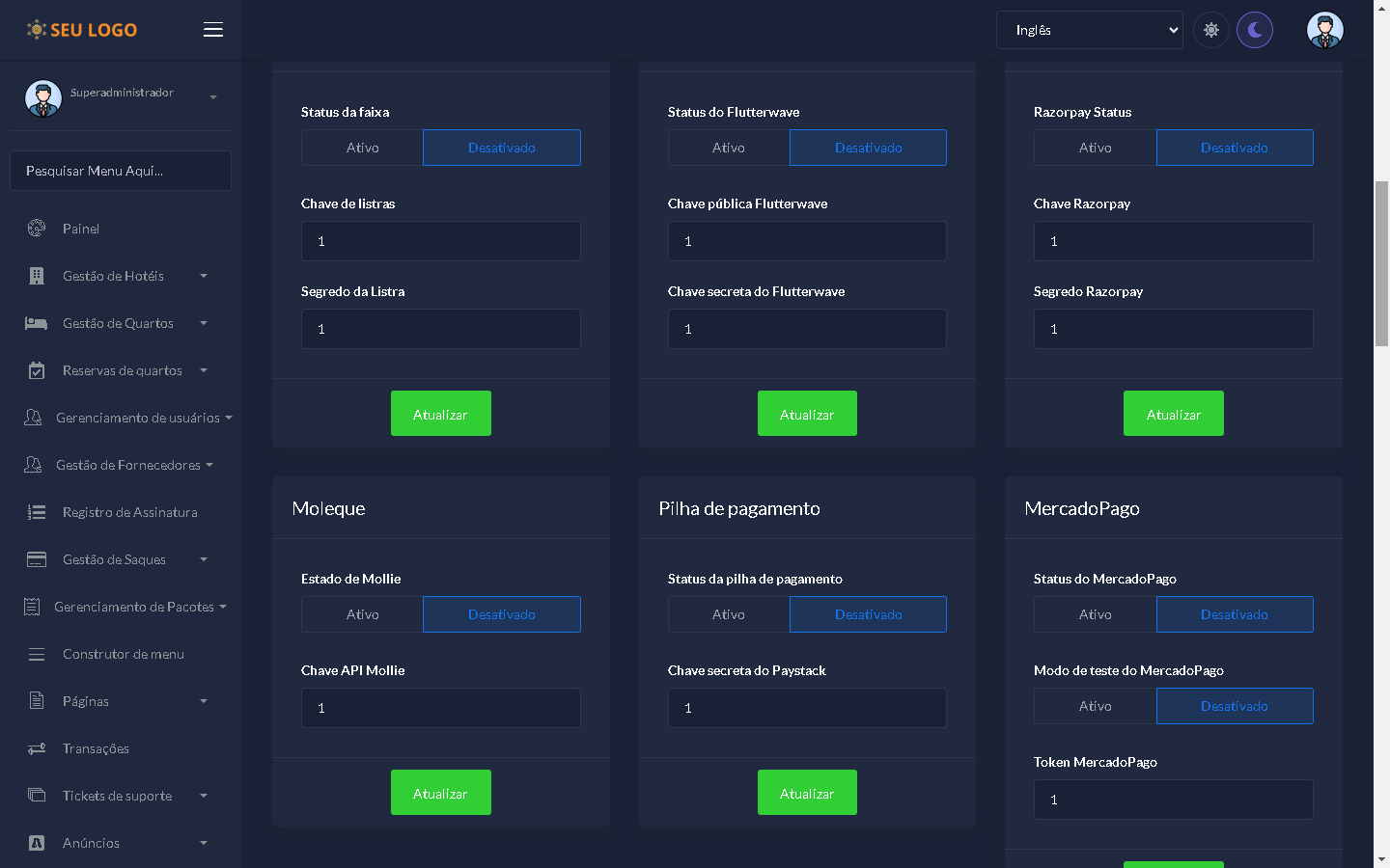 ✅ 19 Gateways de pagamento (já disponíveis)